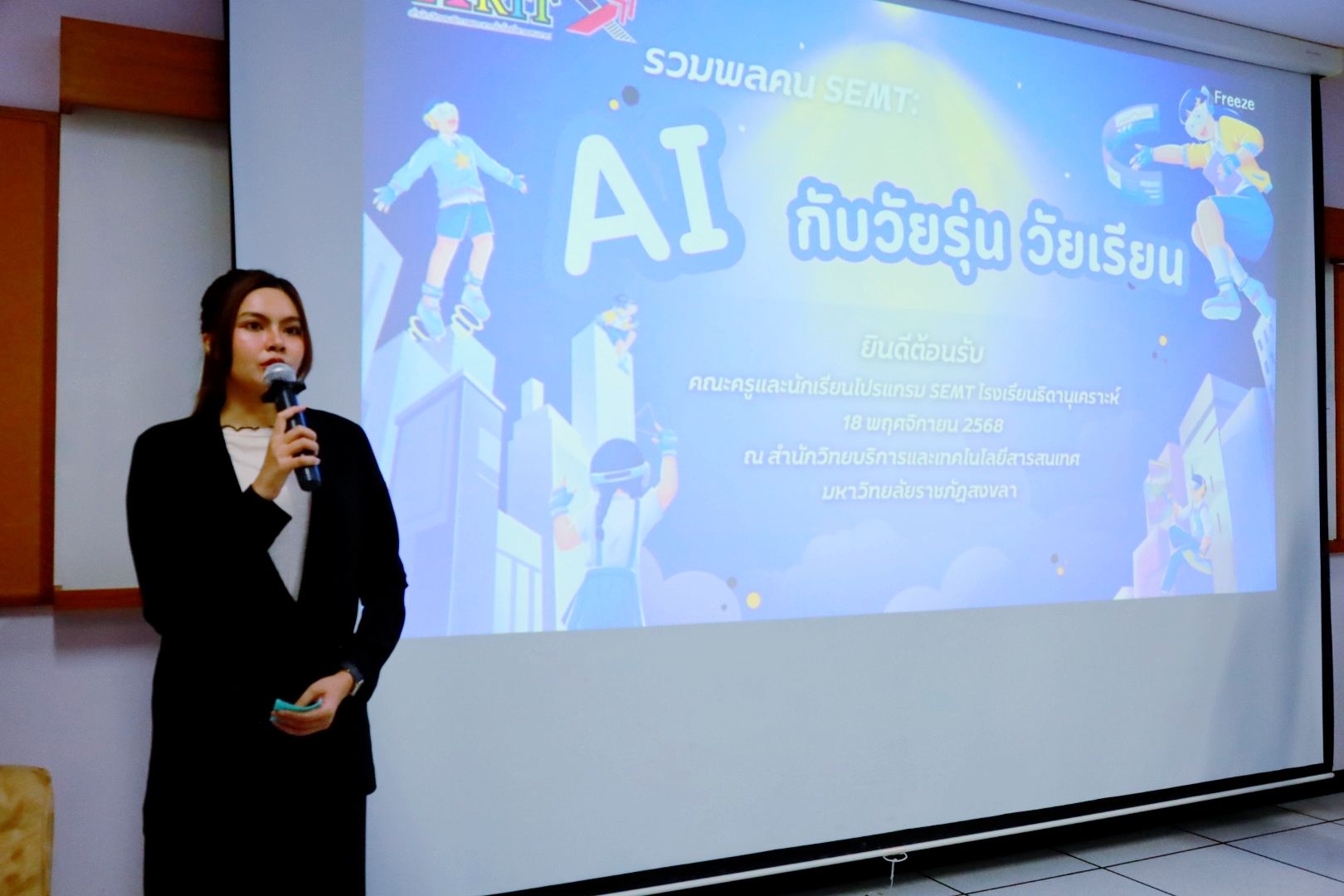 ⏰⏰วันที่ 18 พฤศจิกายน 2568 สำนักวิทยบริการและเทคโนโลยีสารสนเทศ มหาวิทยาลัยราชภัฏสงขลา โดยอาจารย์เสรี ชะนะผู้อำนวยการสำนักวิทยบริการและเทคโนโลยีสารสนเทศ พร้อมด้วยผู้ช่วยศาสตราจารย์วุฒิชัย อินทร์แก้ว รองผู้อำนวยการ ให้การต้อนรับคณะครูและนักเรียนโรงเรียนธิดานุเคราะห์ อำเภอหาดใหญ่ จังหวัดสงขลา จำนวนกว่า 40 คน เข้าร่วมกิจกรรมอบรมความรู้ด้านปัญญาประดิษฐ์ (AI) ในหัวข้อ "AI กับวัยรุ่น วัยเรียน " ตอบโจทย์ Gen เด็กยุคใหม่ ตามเทรนด์ไม่ตกยุค ณ ห้องปฏิบัติการคอมพิวเตอร์ 202 อาคารศูนย์ภาษาและคอมพิวเตอร์