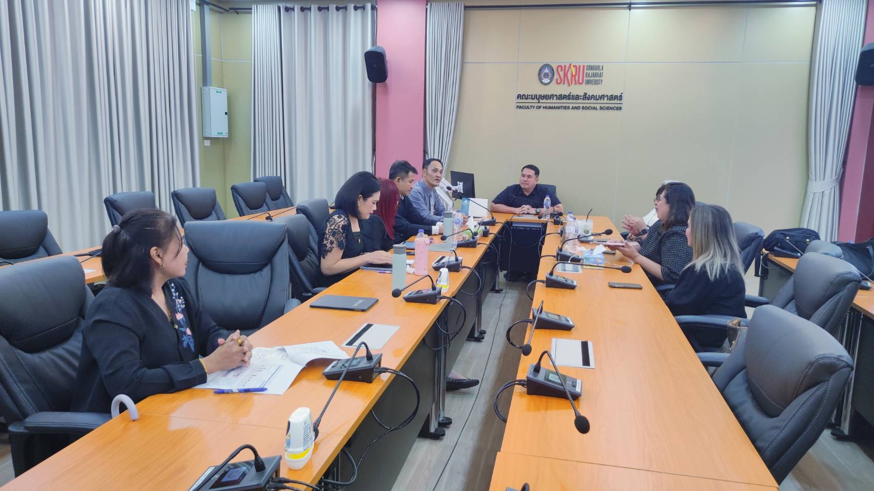 ⏰⏰ 8 มกราคม 2568 สำนักวิทยบริการฯสำนักวิทยบริการและเทคโนโลยีสารสนเทศ จัดกิจกรรม Roadshow “ส่งเสริมการเรียนรู้และการสืบค้นสู่คณะ” วันนี้เราเดินทางมายังคณะมนุษยศาสตร์และสังคมศาสตร์ เพื่อเป็นการลงพื้นที่เน้นการบริการเชิงรุก ตอบโจทย์ลูกค้า และกลุ่มเป้าหมาย ตามคณะ หน่วยงานต่าง ๆ กิจกรรมหลักจะแบ่งออกเป็น 2 ส่วน คือ ส่วนที่ 1 ผู้บริหารพบปะพูดคุย ร่วมหารือแลกเปลี่ยน ในข้อประเด็นด้านต่าง ๆ ทั้งที่เกี่ยวกับนักศึกษาและอาจารย์ โดยมีผู้ช่วยศาสตราจารย์ ดร.รัชชพงษ์ ชัชวาลย์ คณบดีคณะมนุษยศาสตร์และสังคมศาสตร์ และคณะผู้บริหารร่วมให้การต้อนรับ ส่วนที่ 2 การจัดกิจกรรมการออกบูทของส่วนงานต่าง ๆ โดยสำนักวิทยบริการฯ ยกทีมงานไปทั้ง 3 หน่วยงาน ห้องสมุด ศูนย์ภาษา และศูนย์คอมพิวเตอร์ ซึ่งกิจกรรมที่จัดขึ้นมีดังนี้ - บูธห้องสมุด การแนะนำหนังสือที่น่าสนใจทั้งในหมวดนิยาย วรรณกรรม หนังสือที่เกี่ยวข้องกับคณะนั้น ๆ และพร้อมกับแนะนำหนังสือใหม่ ผู้เข้าร่วมกิจกรรมสามารถยืมหนังสือ ณ บริการยืม-คืนทรัพยากรสารสนเทศที่เรายกขบวนไปถึงที่ บุคคลใดจะยืมหนังสือ หรือจะคืนหนังสือก็สามารถนำมาคืนได้เลย โดยไม่จำเป็นต้องมาที่ห้องสมุด พร้อมกับมอบของที่ระลึกเล็ก ๆ น้อย ๆ ให้แก่ผู้ที่มายืมเพียง 10 คนแรก และบริการตอบคำถามต่างๆ