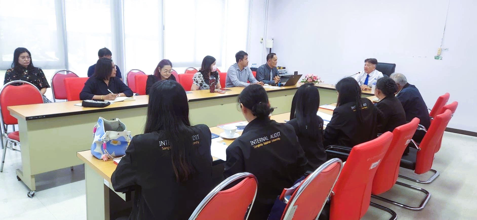 นางสาวกัฑณา ลิ่มชวลิต กรรมการ พร้อมด้วยคณะกรรมการตรวจสอบ ประจำมหาวิทยาลัยราชภัฏสงขลา ในโอกาสเข้าเยี่ยมรับฟังการดำเนินงาน ประเด็นปัญหา และให้ข้อเสนอแนะด้านต่าง ๆ ของสำนักวิทยบริการฯ กิจกรรมจัดขึ้น ณ ห้องประชุมศูนย์ภาษา 1 อาคารศูนย์ภาษาและคอมพิวเตอร์