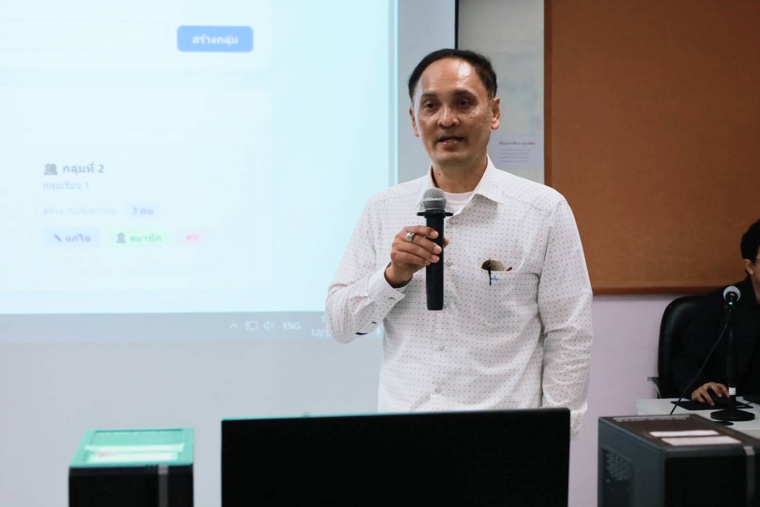 วิทยากรนำโดย อาจารย์เสรี ชะนะ ผู้อำนวยการ ผู้ช่วยศาสตราจารย์วุฒิชัย อินทร์แก้ว รองผู้อำนวยการ และนายธนภัทร เจิมขวัญ นักวิชาการคอมพิวเตอร์ ชำนาญการ