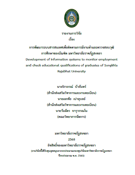 การพัฒนาระบบสารสนเทศเพื่อติดตามการมีงานทำและตรวจสอบวุฒิ การศึกษาของบัณฑิต มหาวิทยาลัยราชภัฏสงขลา (Development of information systems to monitor employment and check educational qualifications of graduates of Songkhla Rajabhat University)