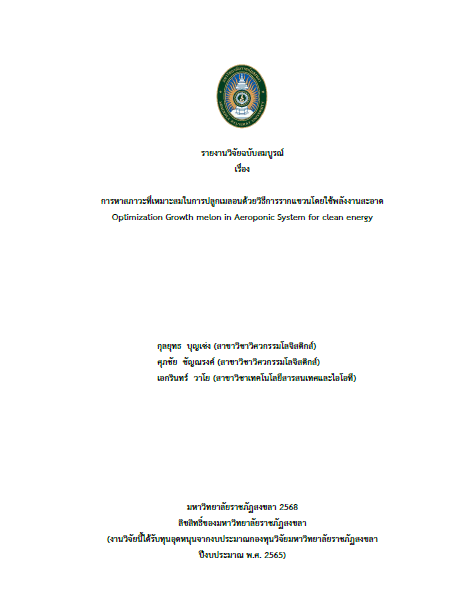 การหาสภาวะที่เหมาะสมในการปลูกเมลอนด้วยวิธีการรากแขวนโดยใช้พลังงานสะอาด (Optimization Growth melon in Aeroponic System for clean energy)