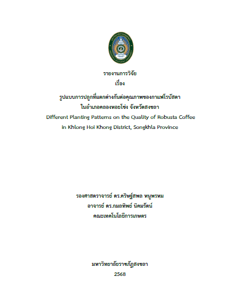 รูปแบบการปลูกที่แตกต่างกันต่อคุณภาพของกาแฟโรบัสตา ในอําเภอคลองหอยโข่ง จังหวัดสงขลา (Different Planting Patterns on the Quality of Robusta Coffee in Khlong Hoi Khong District, Songkhla Province)
