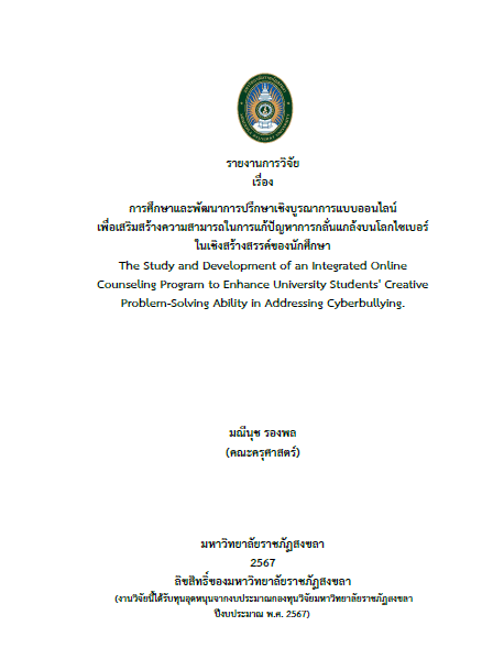 การศึกษาและพัฒนาการปรึกษาเชิงบูรณาการแบบออนไลน์ เพื่อเสริมสร้างความสามารถในการแก้ปัญหาการกลั่นแกล้งบนโลกไซเบอร์ ในเชิงสร้างสรรค์ของนักศึกษา
